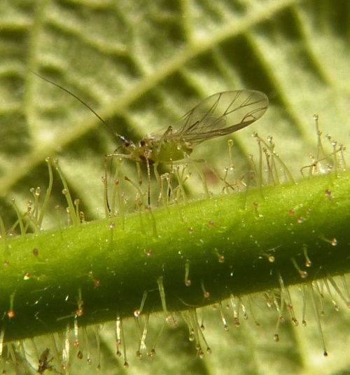 Corylobium avellanae apterae are usually yellowish-green but in one form the aphid is mottled with red. For additional information see ‘Further info’ link below.