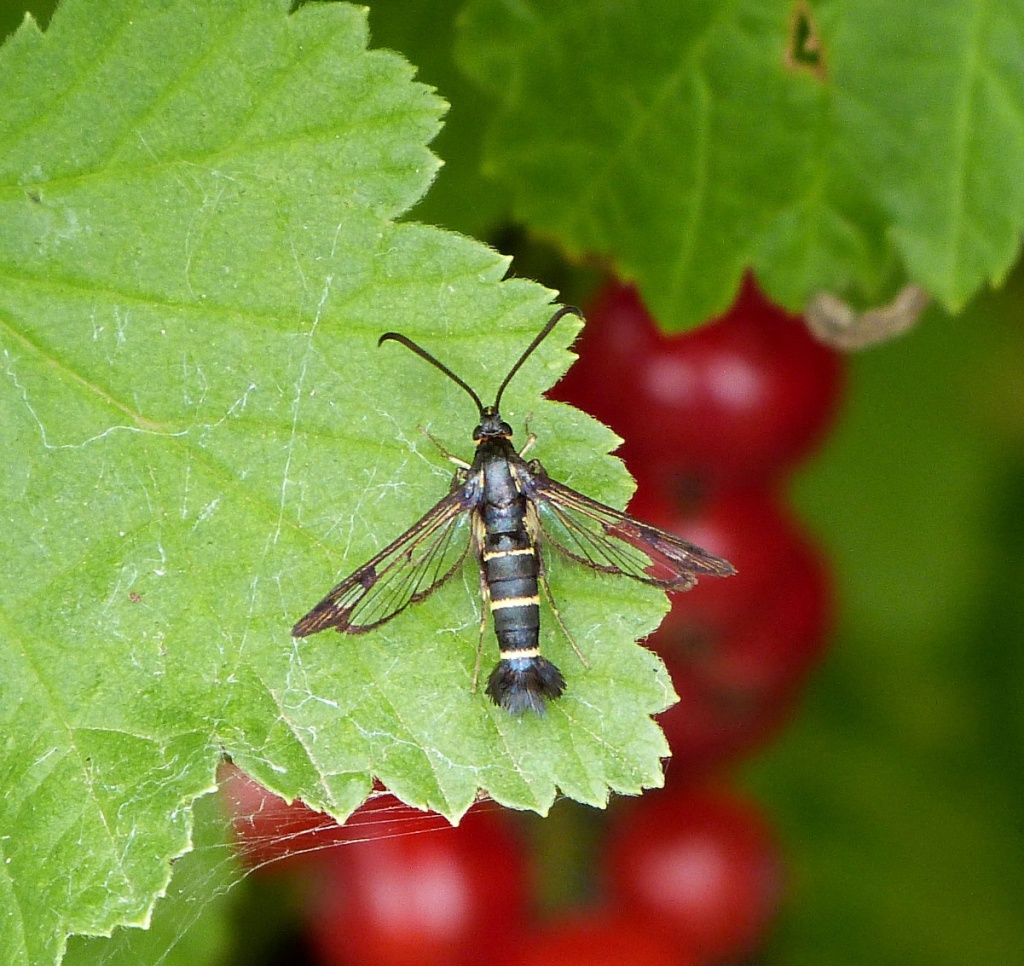Currant Clearwing is widely distributed throughout England and Wales, extending into parts of Scotland, but was previously thought to be uncommon. In a recent survey to determine the status of all macro moths in Britain this species was classified as Nationally Scarce B but the introduction of an effective pheromone lure for this species has shown it to be more common than previously thought.