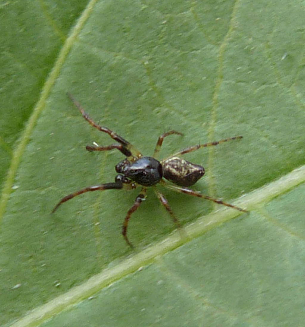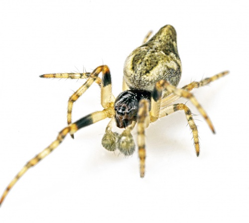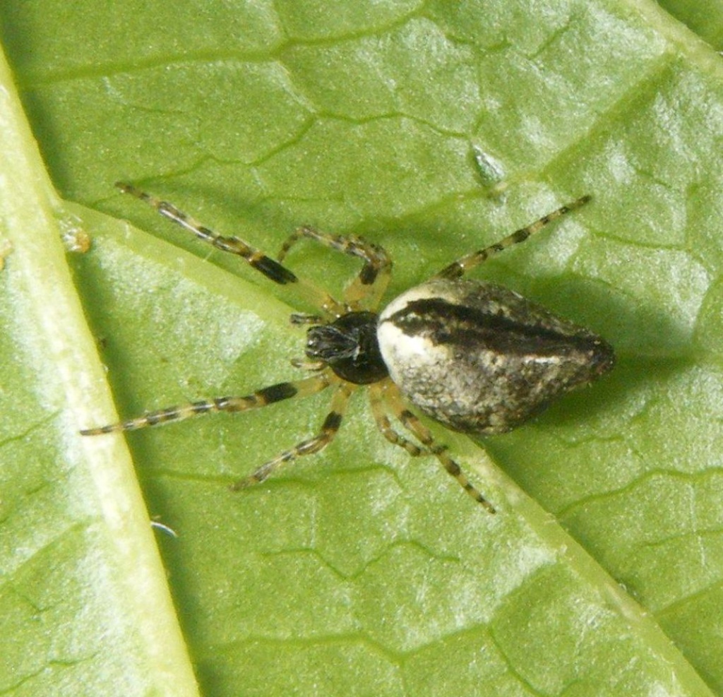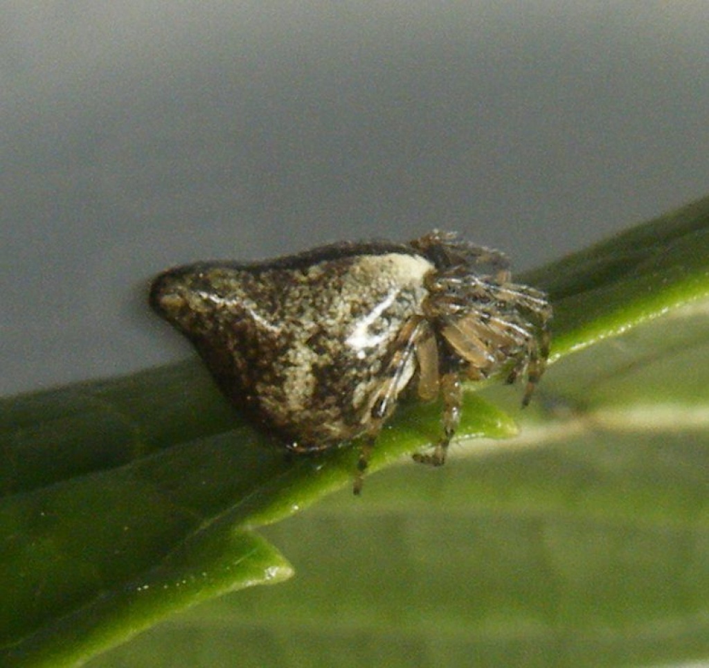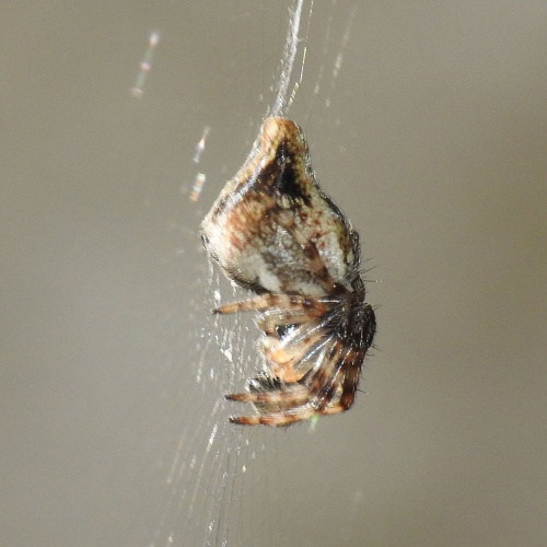 This is an odd looking spider. It has a single tubercle (hump) on the rear of its abdomen This spider can be quite variable in colour and pattern, however its shape is so distinctive that it is hard to mistake.
