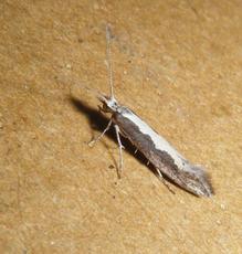 Wingspan 13-15 mm. A distinctive moth with a "diamond" like pattern along the length of its back.