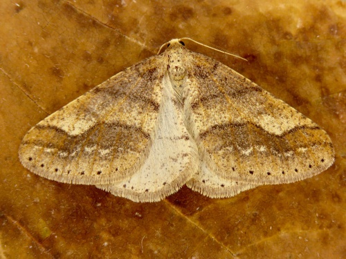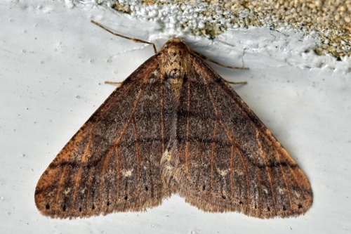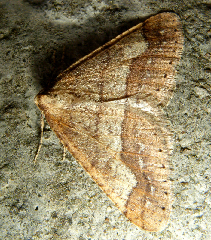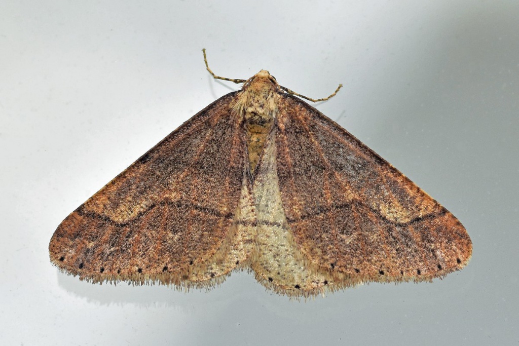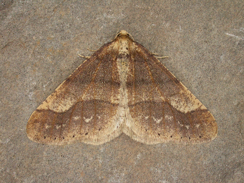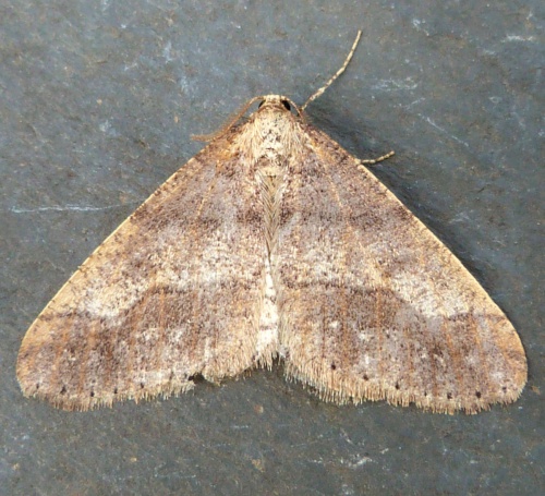 Wingspan 27-32 mm. There are quite a number of variations of this species of moth, including a virtually all-dark form. The females are flightless and have only vestigial wings.