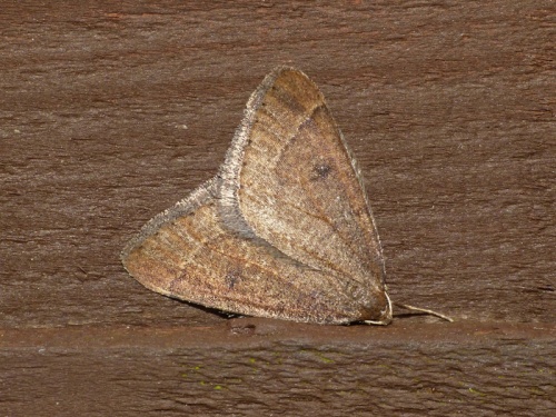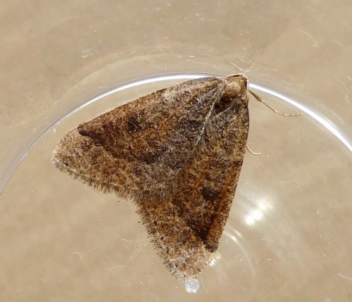 Wingspan 32-37 mm. Like many other winter species, the females are almost wingless. The male is a brown moth usually with a darker spot on each wing.