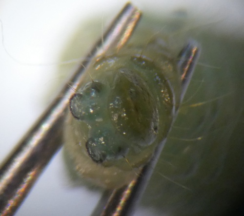 The larva always feeds singly on the pith in the cavity of a teasel seedhead.