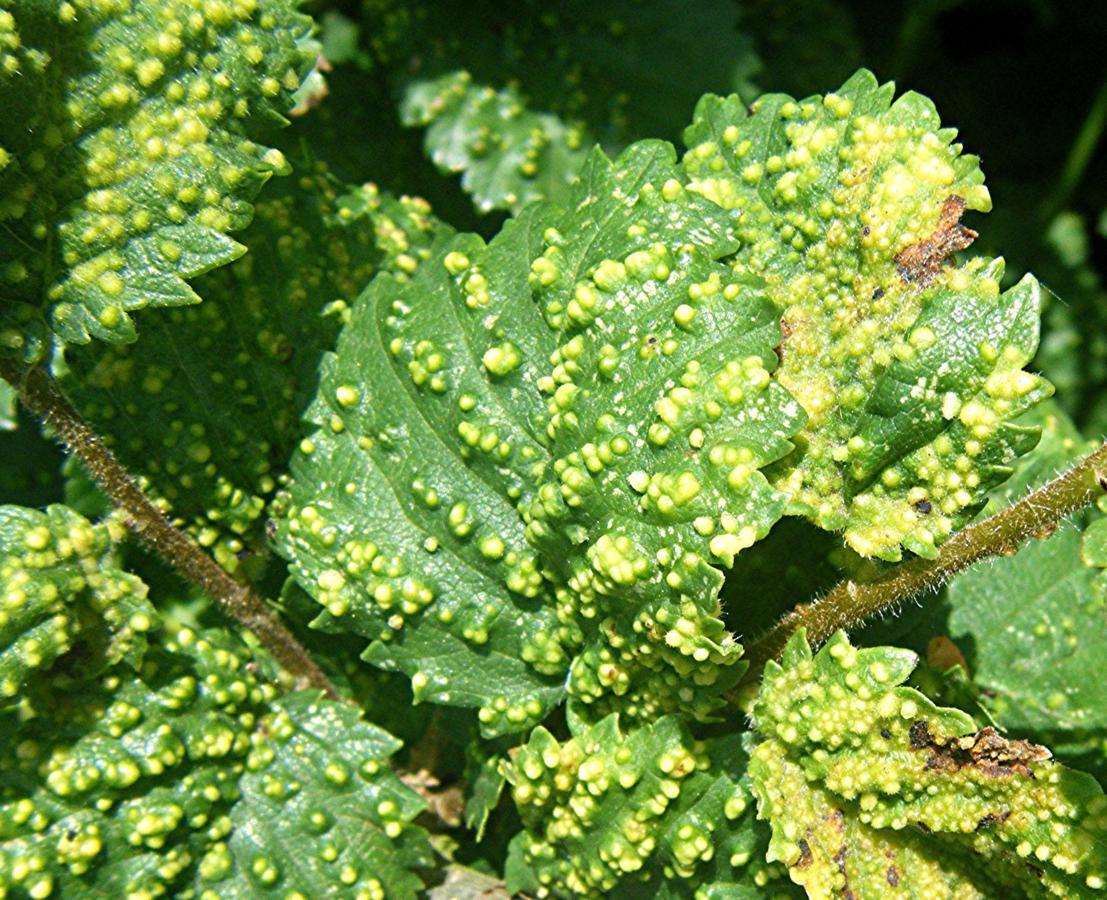 Aceria campestricola is a gall mite that causes numerous small pouch galls to form on the upper leaf surfaces of certain species of Elm.