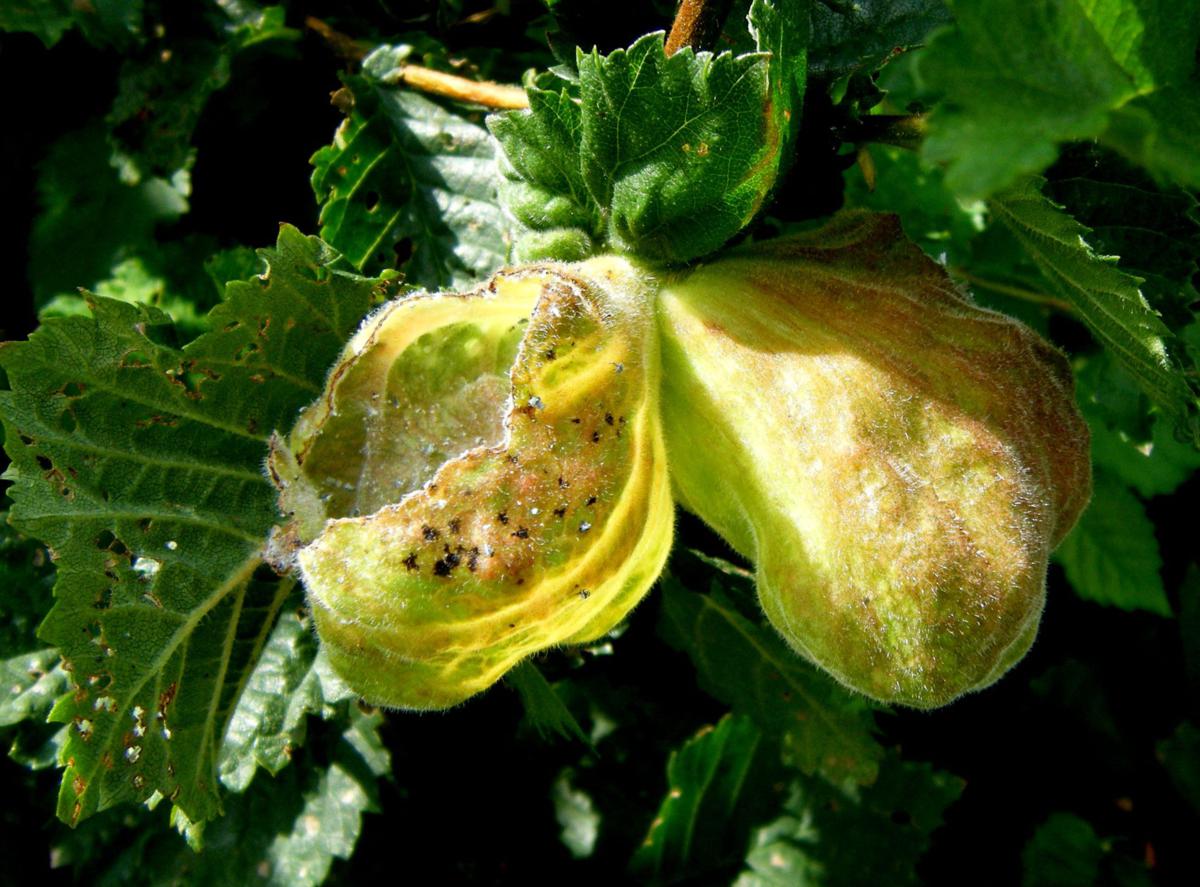 Eriosoma lanuginosum is an aphid which causes the formation of a leaf gall on Elm which takes the form of a bladder looking like a pale green egg or pear which may be 6 or even 8 cm long and nearly as wide. The gall is more often seen than the adult aphid.