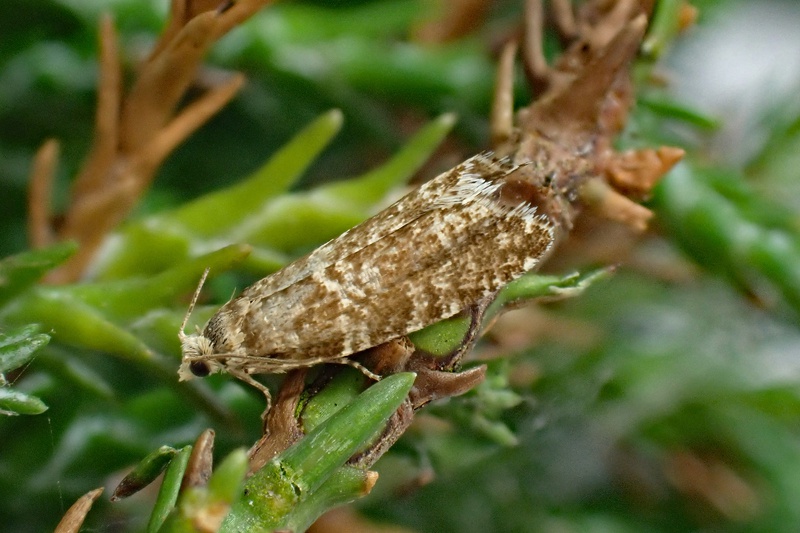 The species is fairly common throughout the British Isles in those areas where its foodplant, Norway spruce (Picea abies) occurs. In the Butterfly Conservation’s Microlepidoptera Report 2011 this species was classified as common.