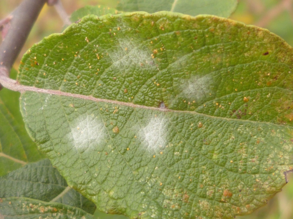 Photograph on host plant, and add host species to the comments for your record.  Microscopic examination of chasmothecia is needed to separate from similar species on this host.