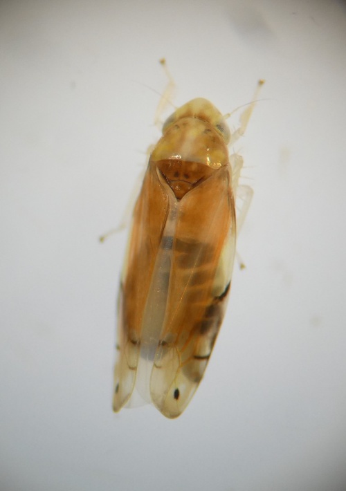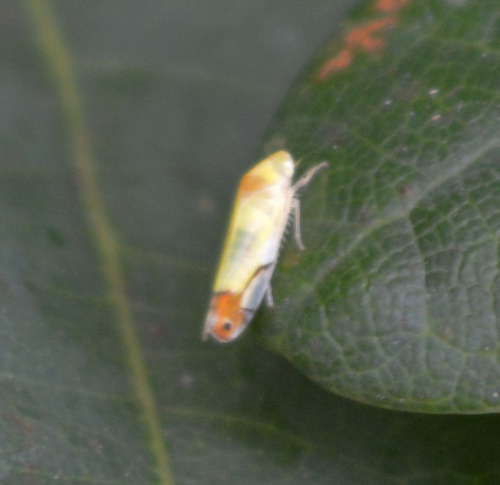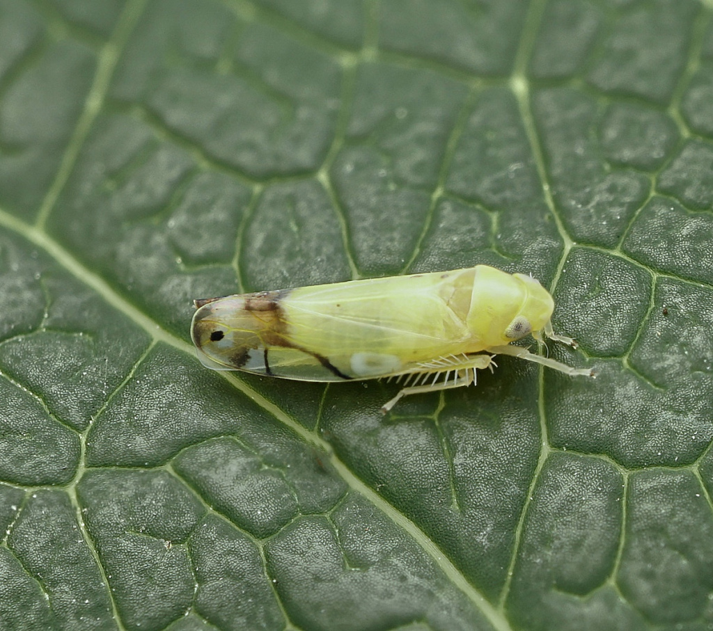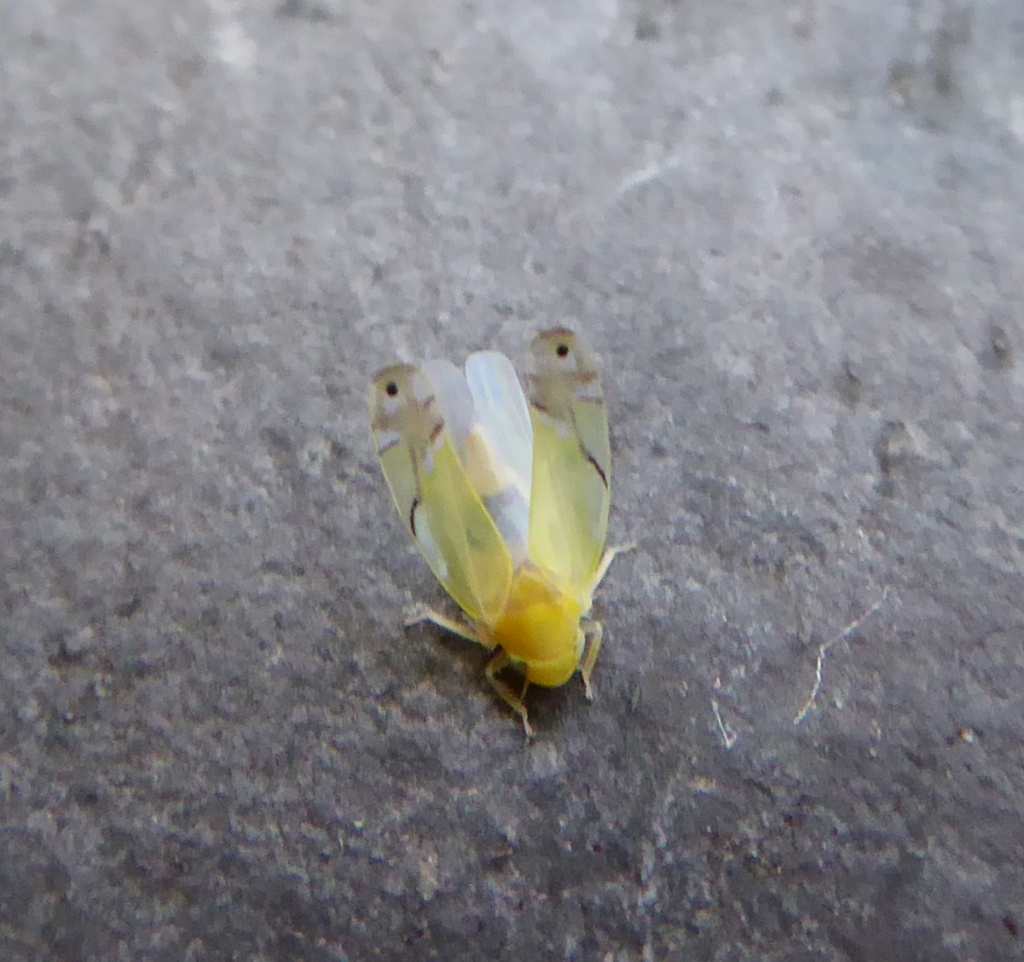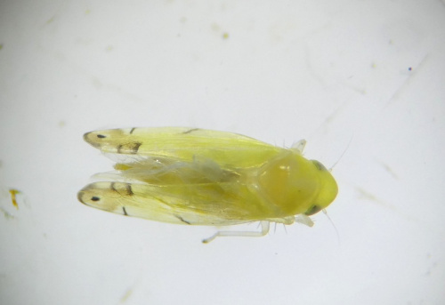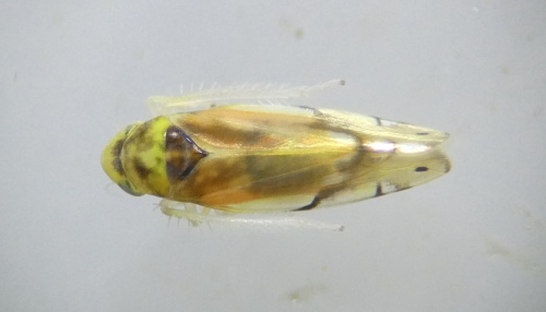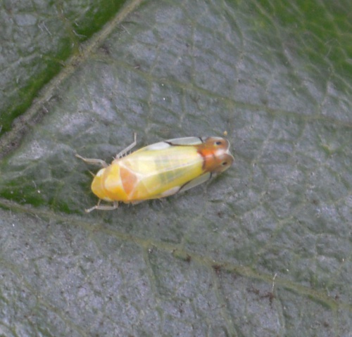 Length 4 mm; associated with oak. It has a fatter, flattened appearance compared to other Typhlocybinae. Ground colour is variable - from whitish to pale yellow, bright yellow and a pinkish-orange. There is a black spot on the outer apical vein. Nymphs are flattened and pale. with distinctive dark markings, but cannot be identifed.