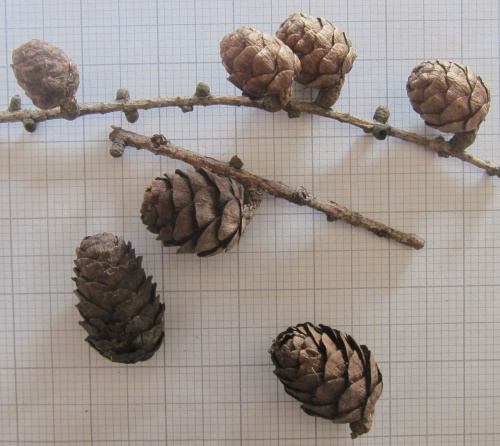 L. kaempferi - pink to red twigs with leaves 15 to 40 mm long and short ovoid cones