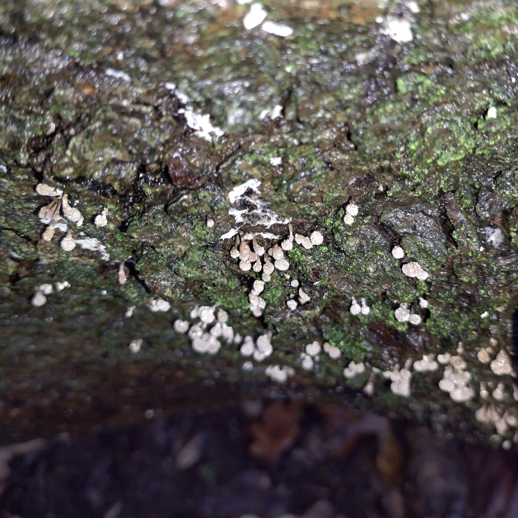 On the bark of dead hardwood, mostly Beech but occasionally other species.