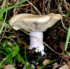 The Wood Blewit (Lepista nuda) has some violet colour on the cap.