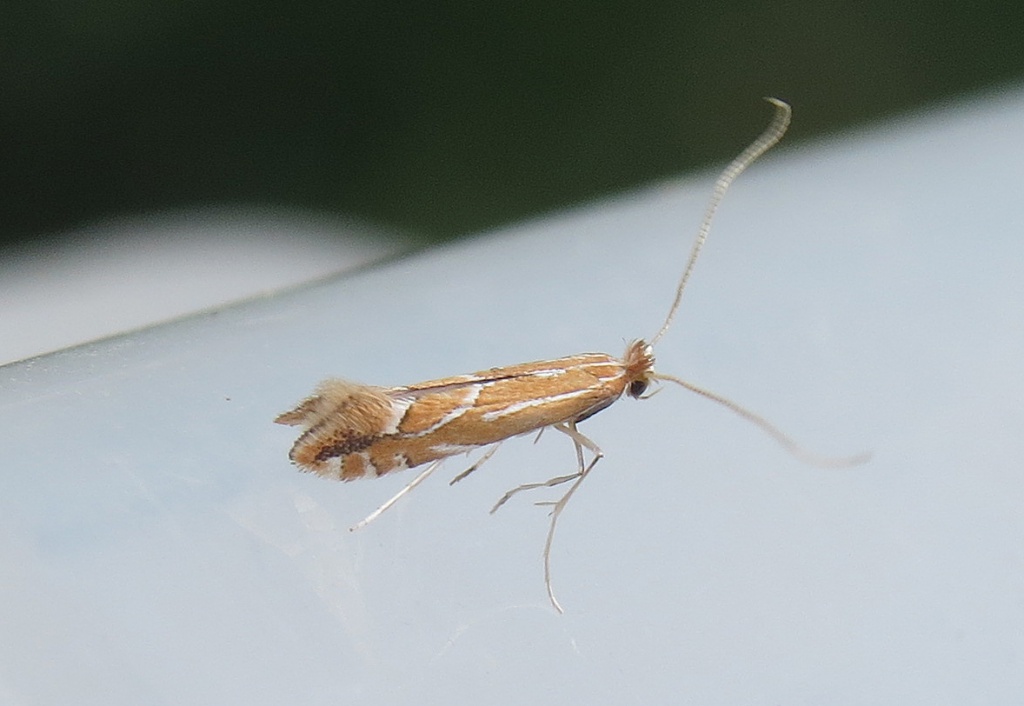 Now fairly common in parts of England. Discovered in Essex in 1989, this species has spread rapidly northwards through England to parts of north Yorkshire. In the Butterfly Conservation’s Microlepidoptera Report 2011 this species was classified as common.
