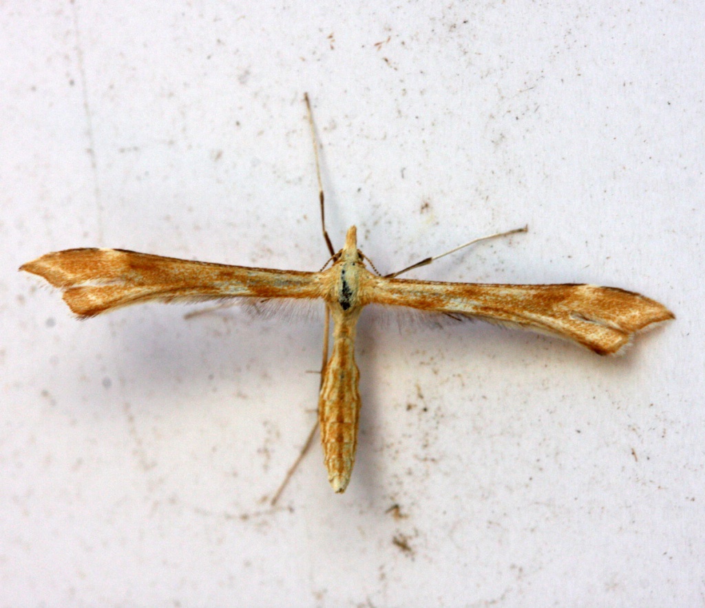 Wingspan 23 to 27 mm. Superficially similar to P. pallidactyla, this species has the hind leg banded brown and white below the middle spurs, and is often more distinctly marked on the forewing.