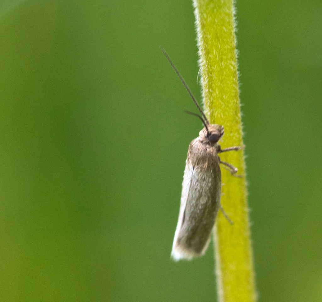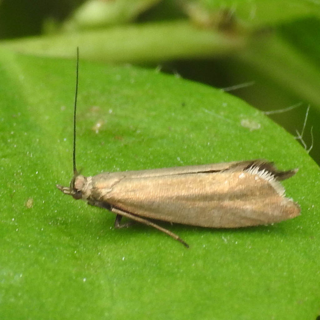 Wingspan 10 to16 mm. A relatively plain pale buff species with a slight metallic sheen.