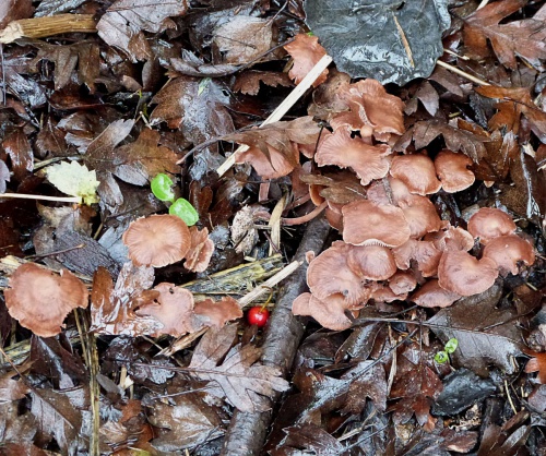 This is difficult to identify from photos, and we recommend that a specimen is examined by an expert before submission to NatureSpot. Also photograph from top down, in side view and underneath showing gills, note habitat and substrate.