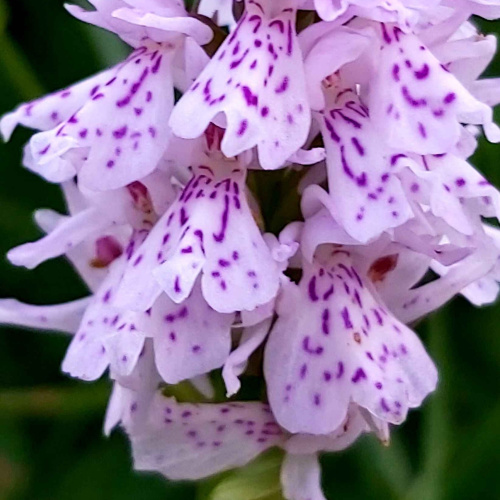 Similar in many respects to Common Spotted-orchid though not as robust. Also the lower lip of the flower is broad and only slightly 3 lobed. The leaves are usually marked with circular spots and mainly have pointed tips.