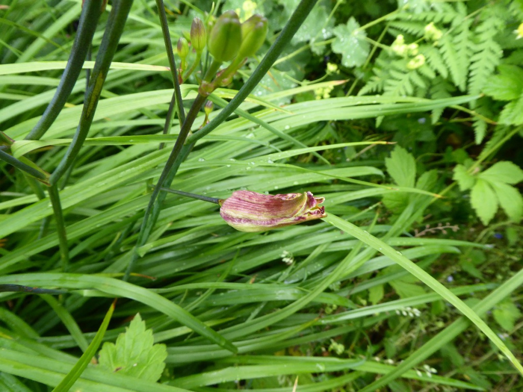 The larvae of the Hemerocallis Gall Midge (Contarinia quinquenotata) are serious pests of Daylilies (Hemerocallis sp.). It infests the flower buds causing the flowers to remain closed and rot. There are many white larva inside between the thickened and distorted petals.