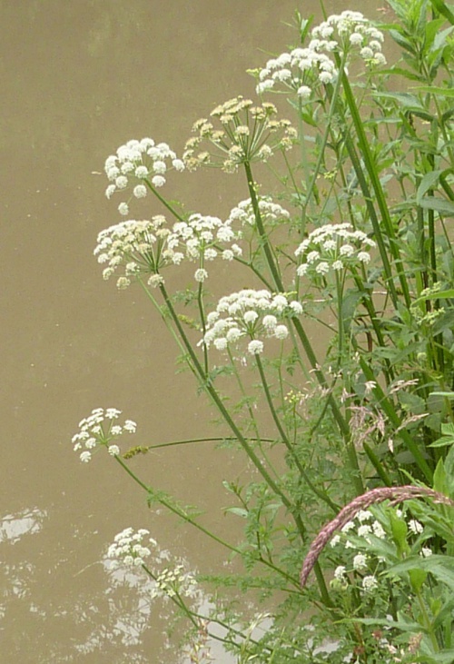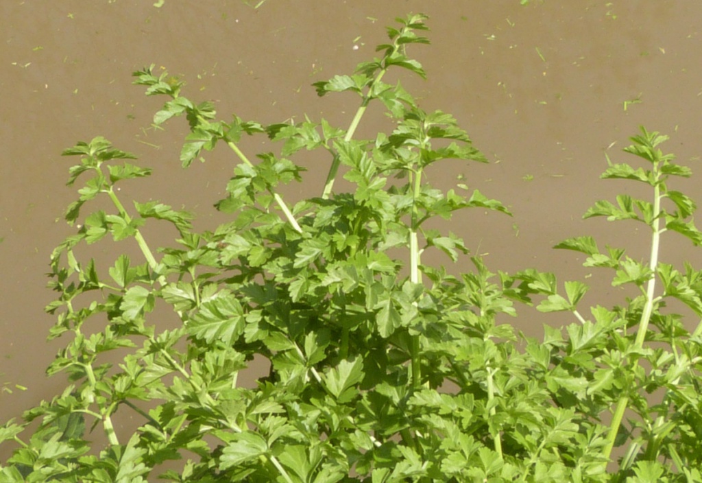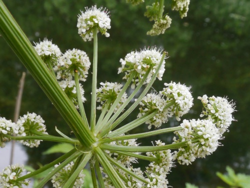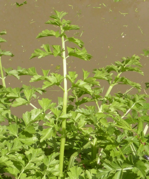 A photograph of the plant in its habitat, showing leaves and side-on view of umbels