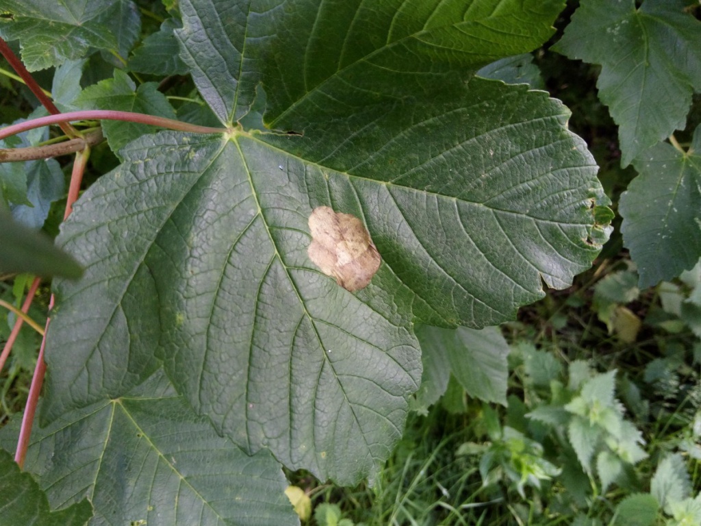 The larvae of the sawfly Heterarthrus cuneifrons mine the leaves of Sycamore, forming a large, central blotch mine, rarely reaching the edge of the leaf.