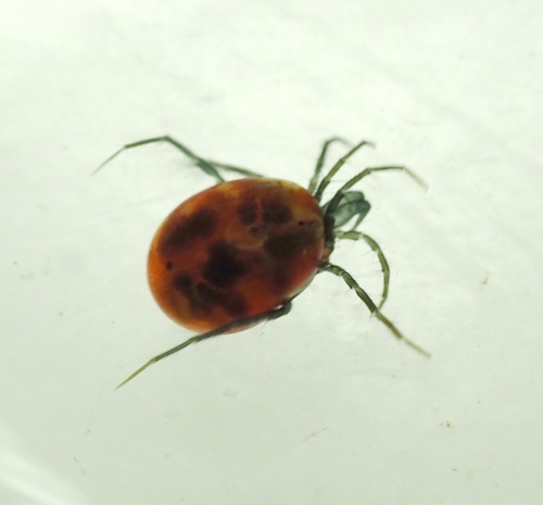 Water mites may be brilliant red or orange in colour, which is unusual among freshwater invertebrates, but they also display more subtle blues, greens and yellows. They are also unusual among mites in some lineages having movable, internalized eye lenses sunk deep within the prosoma rather than being set on the surface of the cuticle. The larvae are parasitic on aquatic bugs.