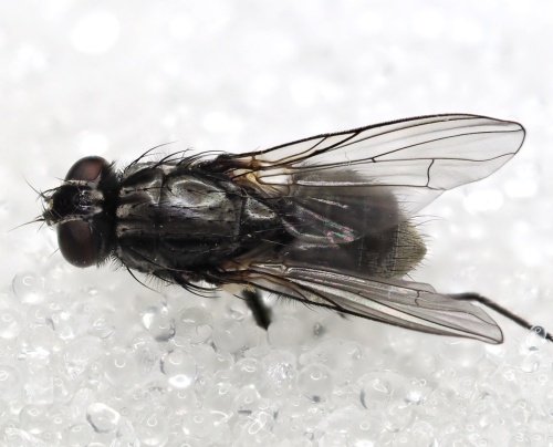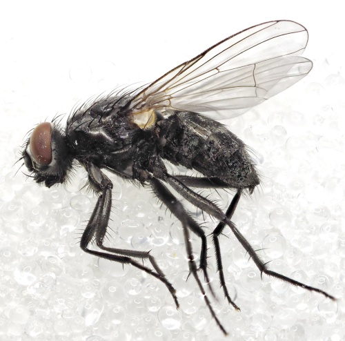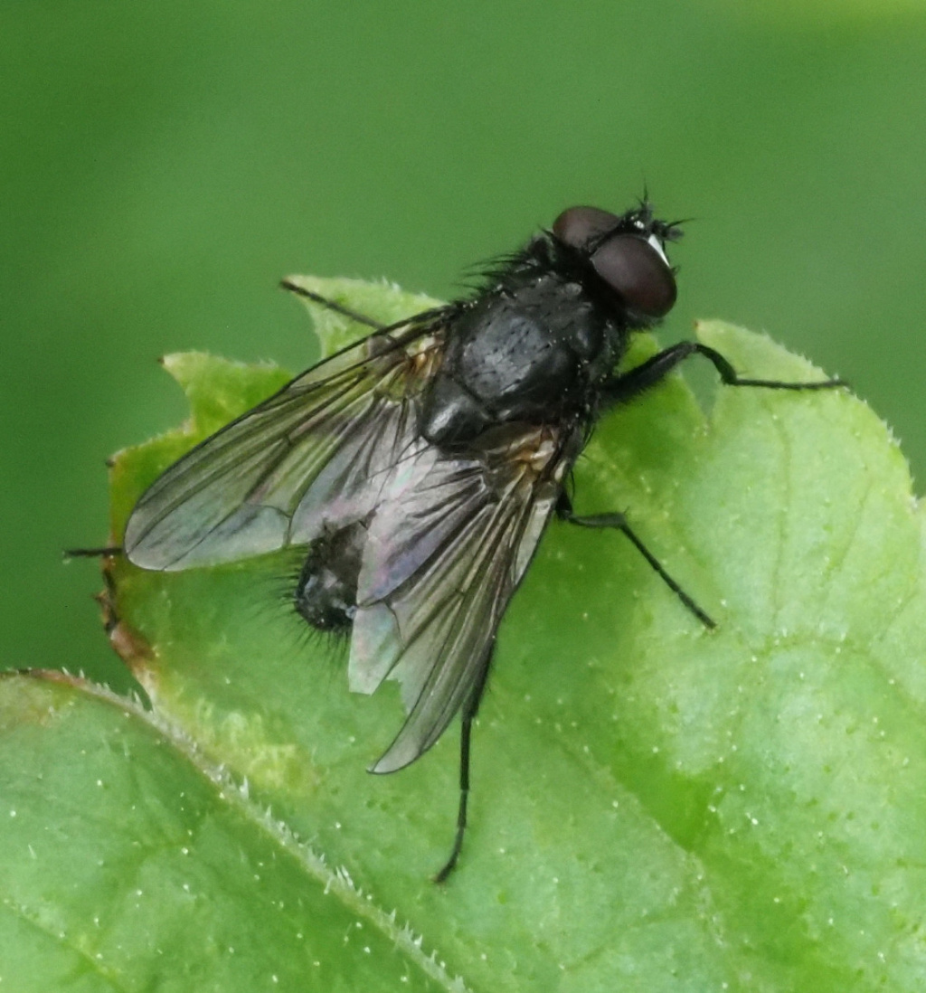 6·5 to 7·75 mm. Like most flies in the Hydrotaea genus it is dark and shiny. Males have the front femur notched and toothed. The thorax, seen from behind, has conspicuous whitish dusting, at least in front of the suture, in line with the acrostichal and dorsocentral bristle rows. The middle tibia, anteriorly along almost whole length, has a dense fine pubescence which is shorter than width of tibia. The discal vein of wing with a slight though distinct curve forward just before apex. Hind tibia with only 2-3 rather short anteroventral bristles. Middle femur, under the basal half has numerous setulose hairs, many of which are more than twice as long as depth of femur.
