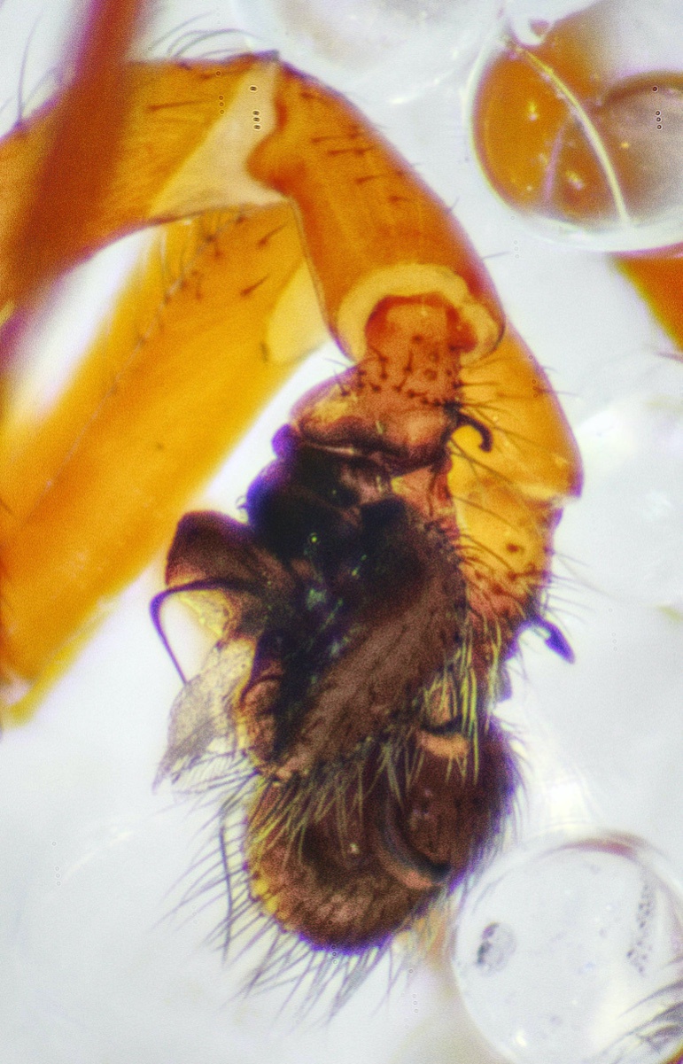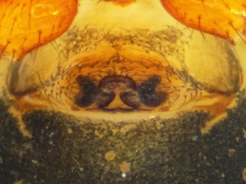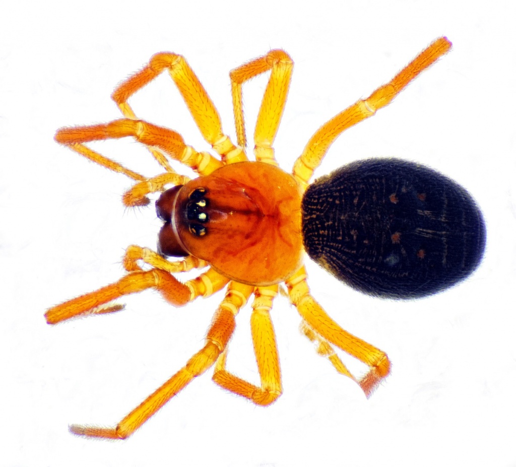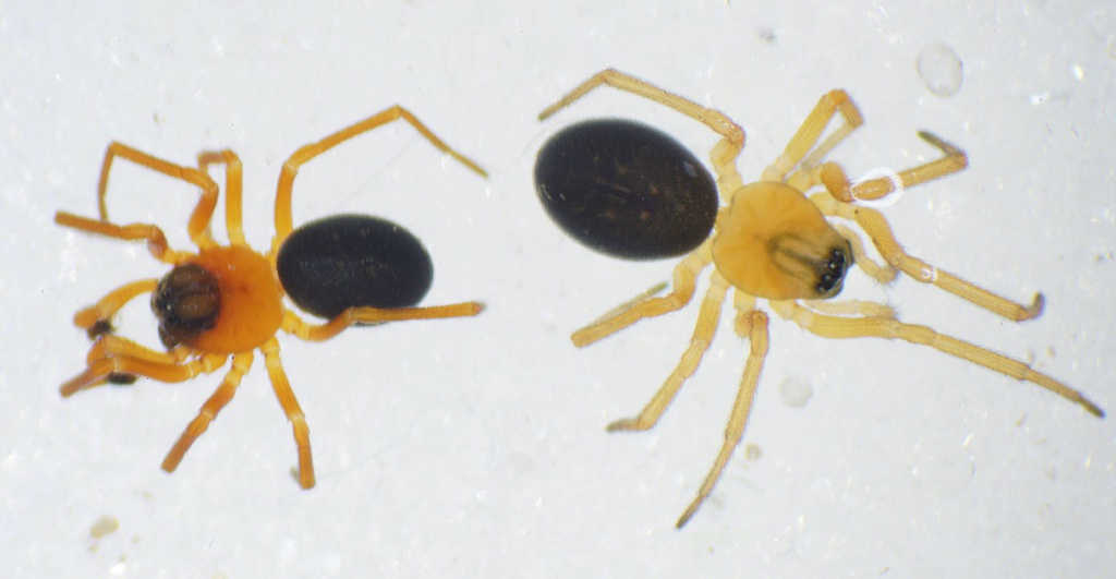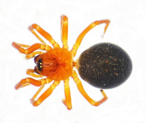 Male: 2.2 to 2.5 mm, female 2.5 to 3 mm. Prosoma red-orange to red-brown. Legs yellow to red-orange. Opisthosoma black.