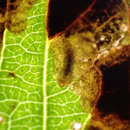 To rear the adults a leaf or two containing mines should be collected and kept in a tupperware box with a little damp kitchen-towel wrapped around the stem to keep the leaf green. This should be kept in a cool dark place and checked every day for adults and wiped clean to avoid mold. The adults will usually emerge after several days. To differentiate between species :-