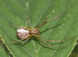 The female is about 6 mm and the male slightly smaller at 5 mm. A small but well-marked spider with a tuning fork shaped mark on the carapace behind the eyes.