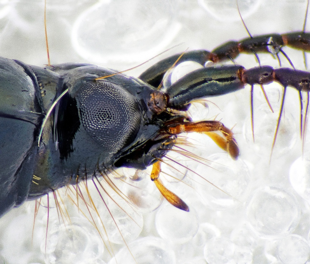 This ground beetle is a specialised feeder on mites and Springtails, using the many bristles on its antennae and head to locate and catch them. It hunts mostly at night.