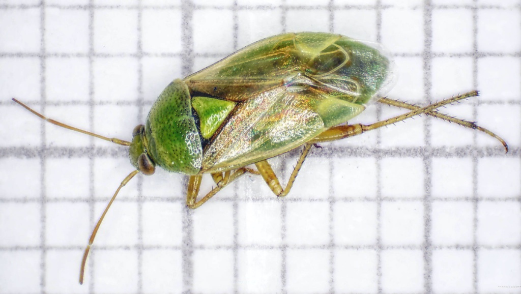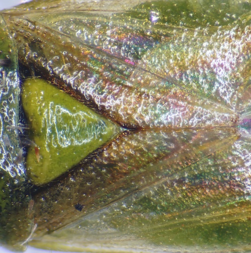 5 to 6 mm. Markings variable but colour predominantly green, pronotum often rose-tinged in the posterior half.