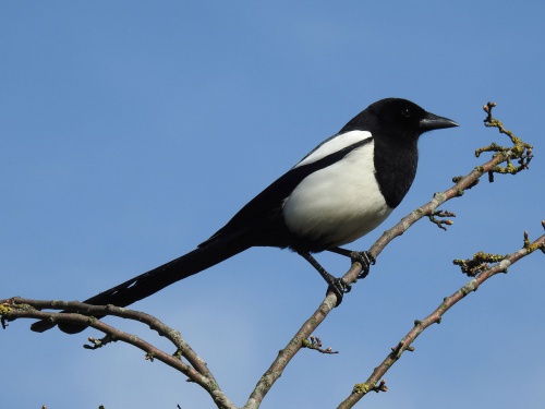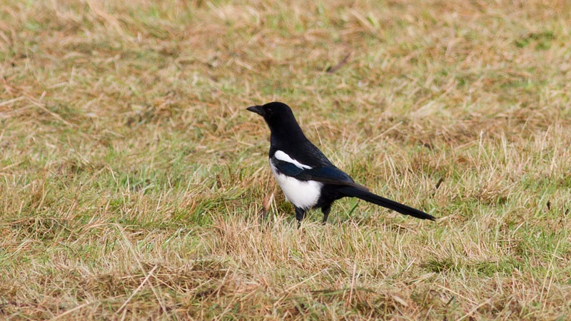 Magpies seem to be jacks of all trades - scavengers, predators and pest-destroyers; their challenging, almost arrogant attitude has won them few friends. With its noisy chattering, black-and-white plumage and long tail, there is nothing else quite like the Magpie in the UK. When seen close-up its black plumage takes on an altogether more colourful hue with a purplish-blue iridescent sheen to the wing feathers and a green gloss to the tail. Non-breeding birds will gather together in flocks.