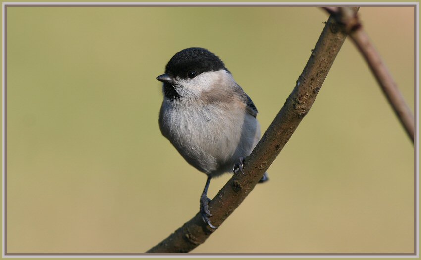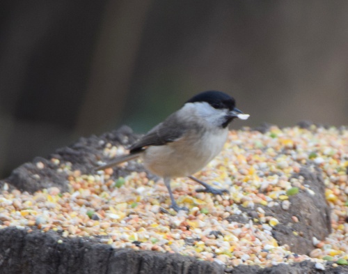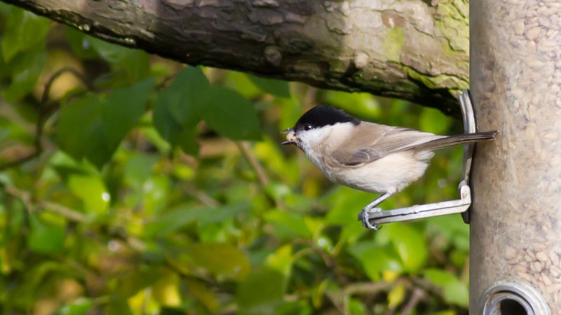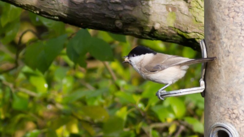 The Marsh Tit is smart, clean looking bird with a small, well defined black bib and glossy black cap. It is very similar to Willow Tit (Parus montanus) but the latter has a larger bib, less glossy black cap and a pale wing panel.