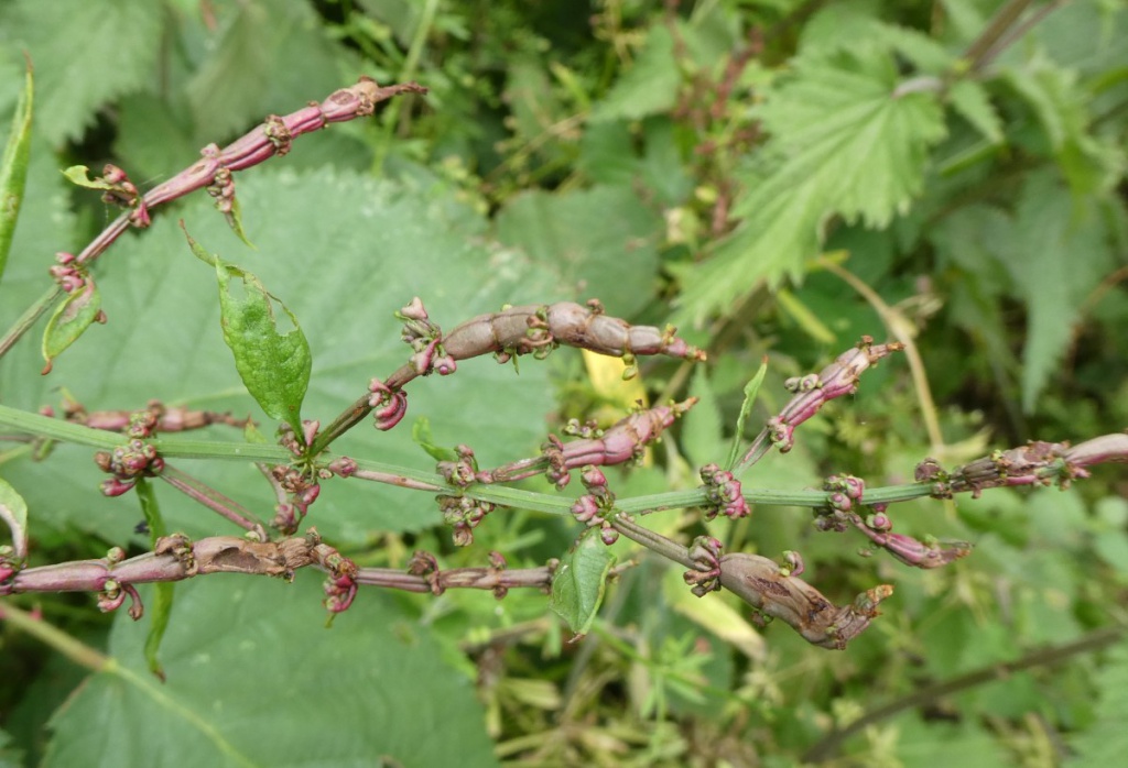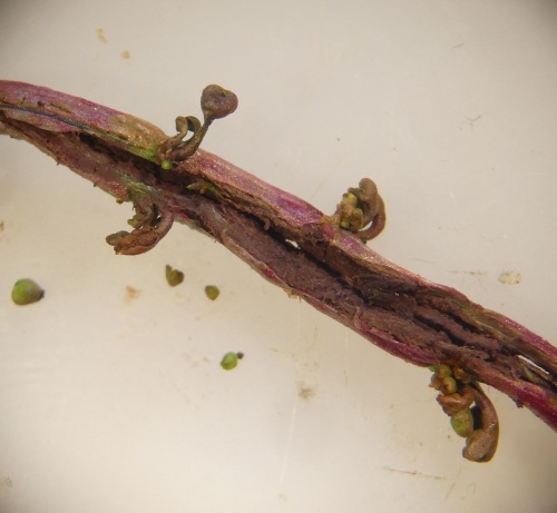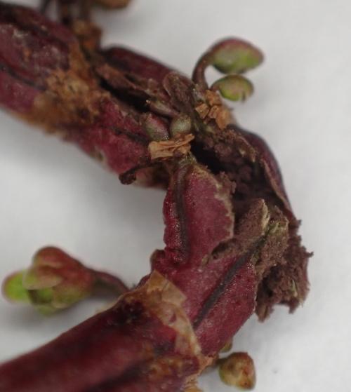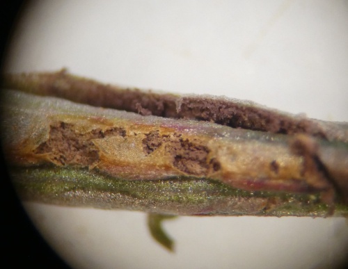 This fungi affects Rumex species causing galls in stems, petioles and midribs, often with distortion and swelling of infected parts, which eventually rupture revealing the dark-violet dusty spore-mass.