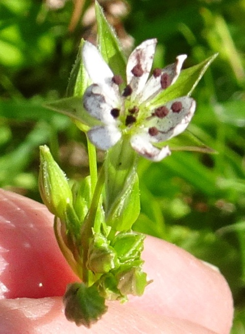Microbotryum stellariae is a gall causing fungus affecting Stellaria species, especially Lesser Stitchwort (Stellaria graminea) and Water Chickweed (Stellaria aquatica, formerly Myosoton aquaticum). Flower anthers of affected plants become thickened and contain a powdery purple mass of spores when mature.