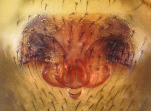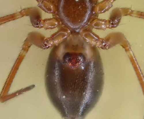 A small (2 to 3mm) sheetweb spider. Positive identification requires careful examination of male palps (4-5 long spines on patella) or female epigyne.