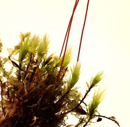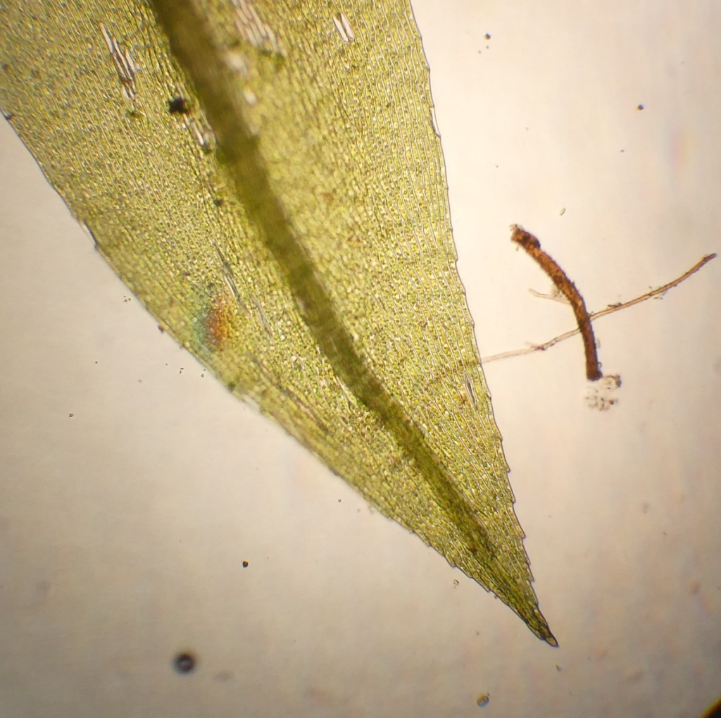 Rather variable in appearance, shoots are typically 1–2 cm tall, dull, dark green in the upper part and pale brown below, and form patches or tufts. The upper part of stems is reddish, with brown rhizoids on the lower part of stems. The spearhead-shaped leaves are larger (about 4.5 mm long) and more crowded towards the tops of shoots, and smaller below (about 2.5 mm long). The nerve ceases just below the leaf tip, and the leaves lack a border. Short-leaved branches often protrude above the cushions. Horizontal or pendulous capsules 3 mm long frequently form in spring and summer. Setae vary in length, but may be quite long.