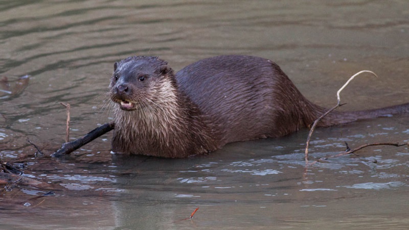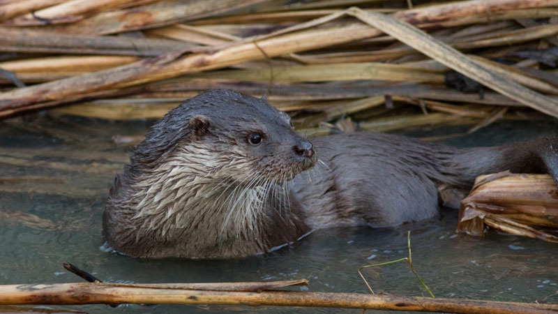 The elusive Common Otter has sleek brown fur, which is often paler on the underside, and a long lithe body with a thick tail and short legs. Adaptations for an aquatic lifestyle include webbed feet, the ability to close its small ears and its nose when under water, and very dense, short fur which traps a layer of air to insulate the animal.