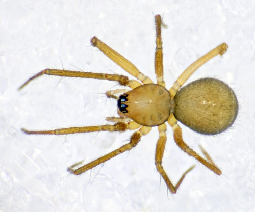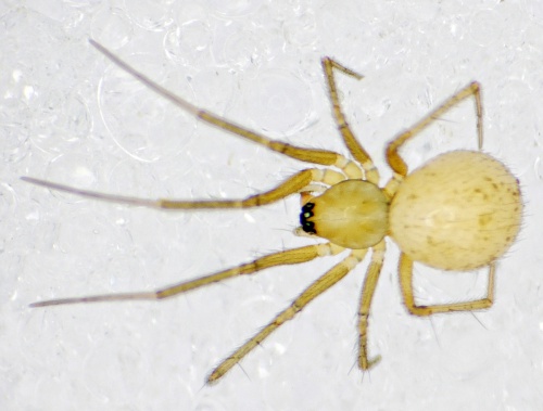 Male body length: 1.3 to 1.9 mm, Female body length: 1.3 to 2.4 mm. Prosoma yellow-brown, with dark margin. Legs yellowish. Opisthosoma yellow-grey.