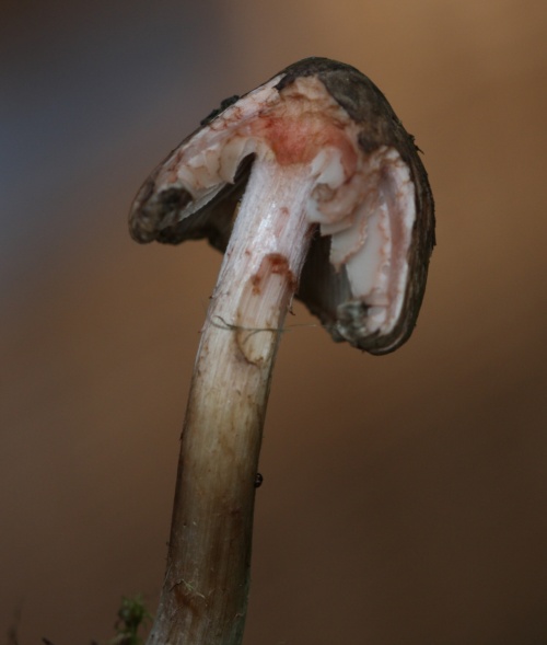 Convex, with a central peak, expanding with age, coarsely fibrous, margin ragged, white then golden brown to reddish brown, to about 6 cm across. Odour strong, fragrant or spicy at first, becoming unpleasant in age; sometimes compared to over ripe pears.