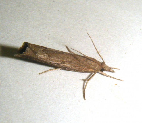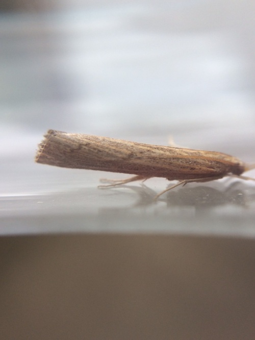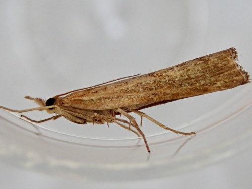The larvae feed in a silken tube amongst grasses such as sheep's fescue (Festuca ovina).
