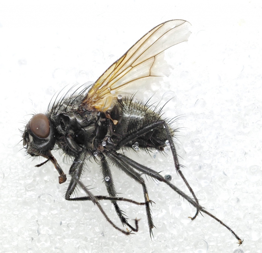 This dark brown/grey bodied fly is very similar to other related species and detailed examination is needed to arrive at the species.