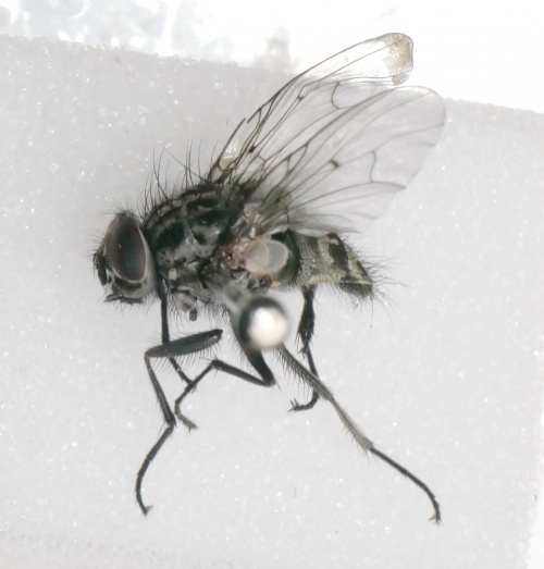 The larvae of Phaonia trimaculata feed on the larvae of Delia radicum, often known as the Cabbage Root Fly.
