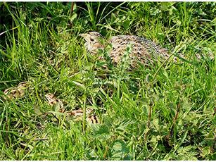 A large, long-tailed game bird. Males have rich chestnut, golden-brown and black markings on body and tail, with a dark green head and red face wattling. Females are mottled with pale brown and black. Pheasants are native to Asia but they were introduced to the UK long ago and more recent introductions have brought in a variety of races and breeds for sport shooting.