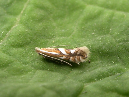 Wingspan 6 to 8 mm. Some more northern examples have rather more blackish suffusion in the wing. Best identified from the similar P. sorbi and P. mespilella by recording as a leafmine and noting the larval foodplant - usually Hawthorn (and occasionally Pear or Quince)..