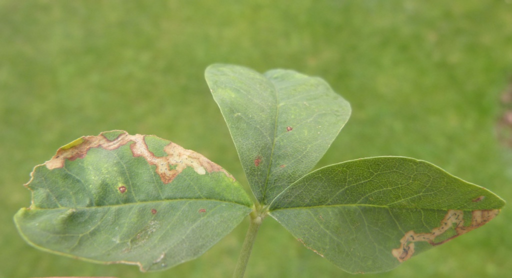 The larvae of the fly Phytomyza cytisi mine the leaves of Laburnum. The mine is linear with primary feeding lines often distinct. Frass is usually in black thread-like strips.