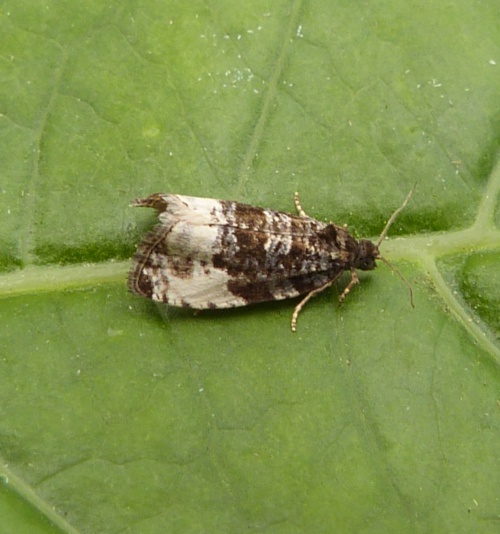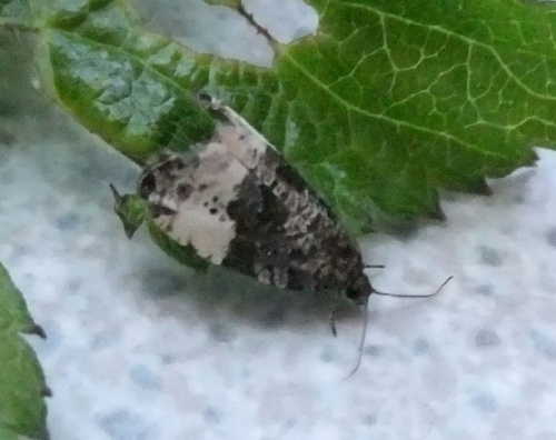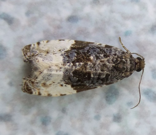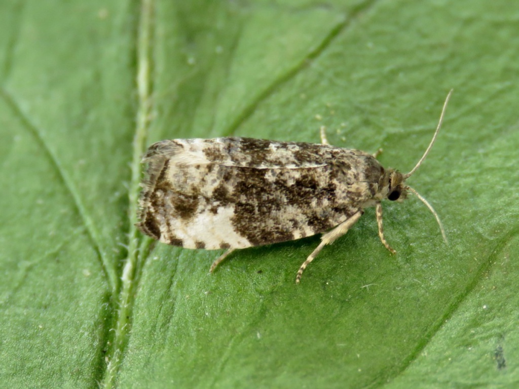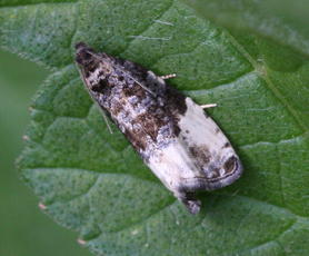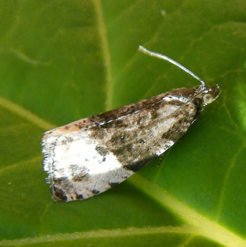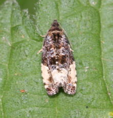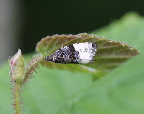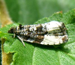 Wingspan 15-18 mm. This species closely resembles H. nubiferana but can be distinguished by the difference in position of the two blackish dots on the white of the forewing.