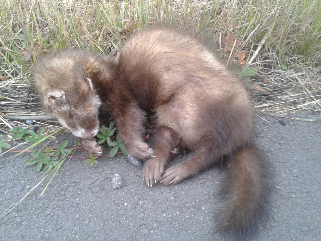 - There are no white throat patches and the paws are dark** (if white patches present, likely to be a polecat ferret/ferret)