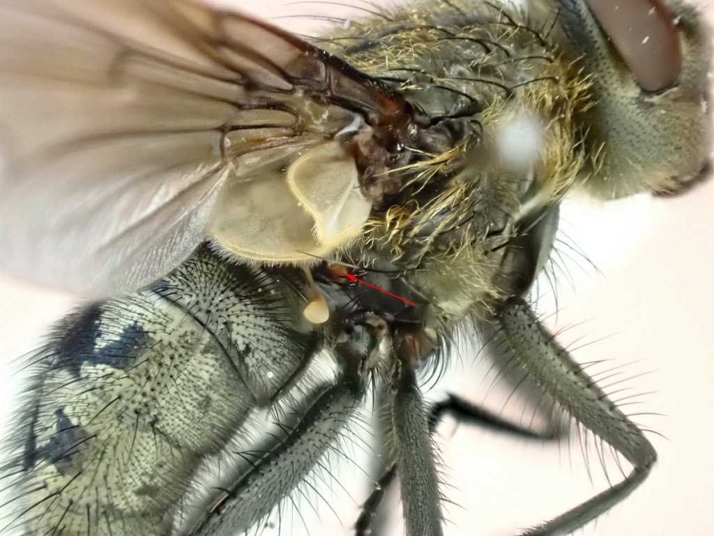 Cluster flies are so called because they congregate, often in large numbers, to hibernate in attics and out-houses. Its larvae parasitise earthworms.