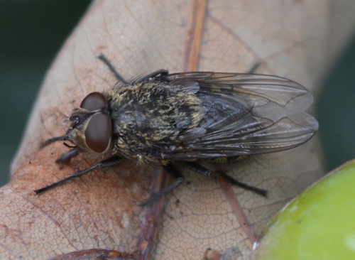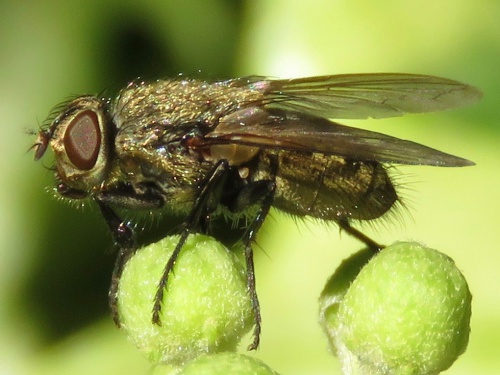There are 8 Pollenia species in Britain, most of which require microscopic examination to key out. See ID Aids below. Pollenia rudis is generally the most common species though some of the others are also common.