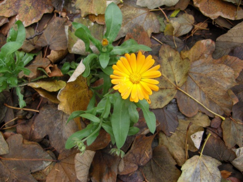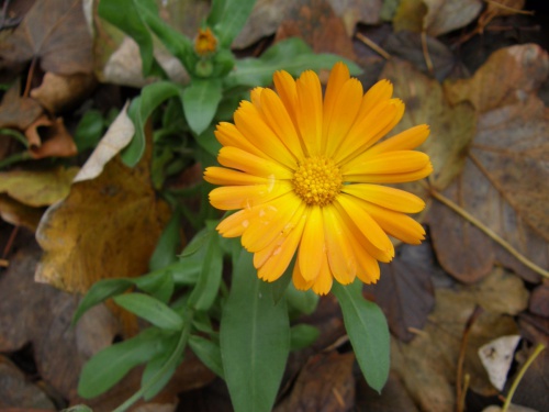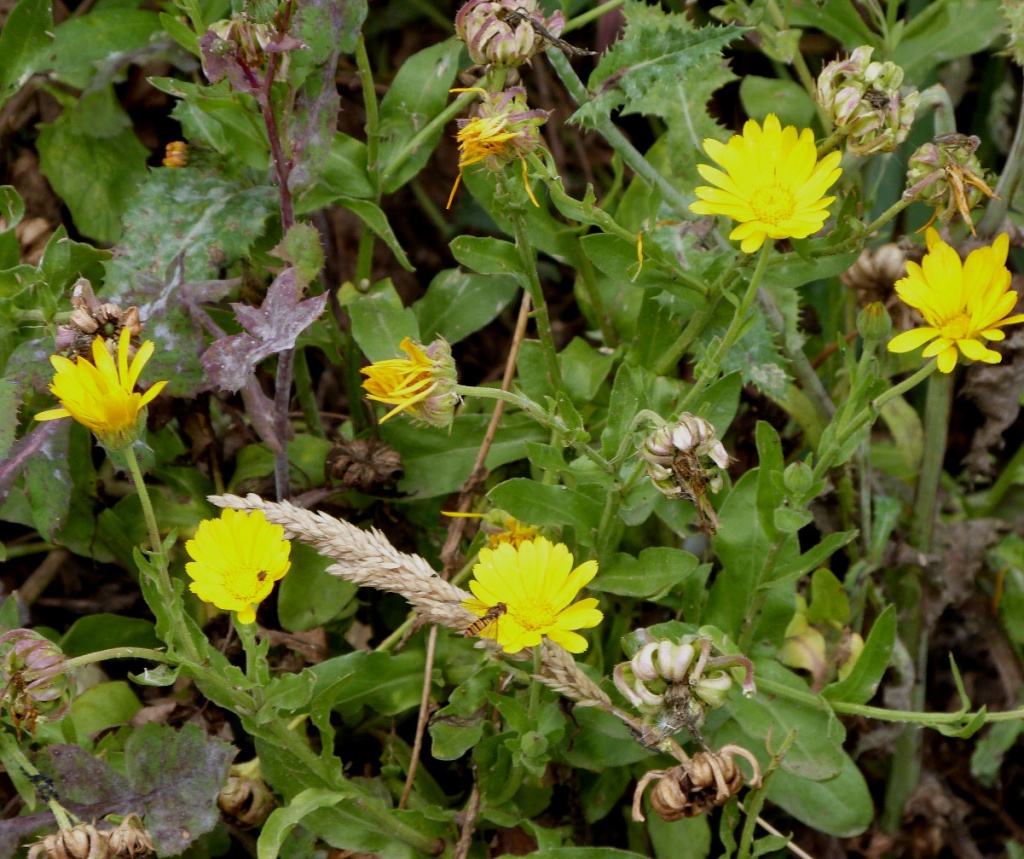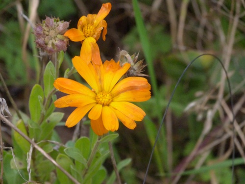 A roughly hairy, short to medium plant, stems branched and spreading, leafy to the top. Leaves oblong to elliptical, often broader towards the top, untoothed. Flowers large and daisy like, orange or deep golden yellow, 40 to 70 mm, solitary, rays broad and strap like. Achenes curved and beaked, boat shaped.